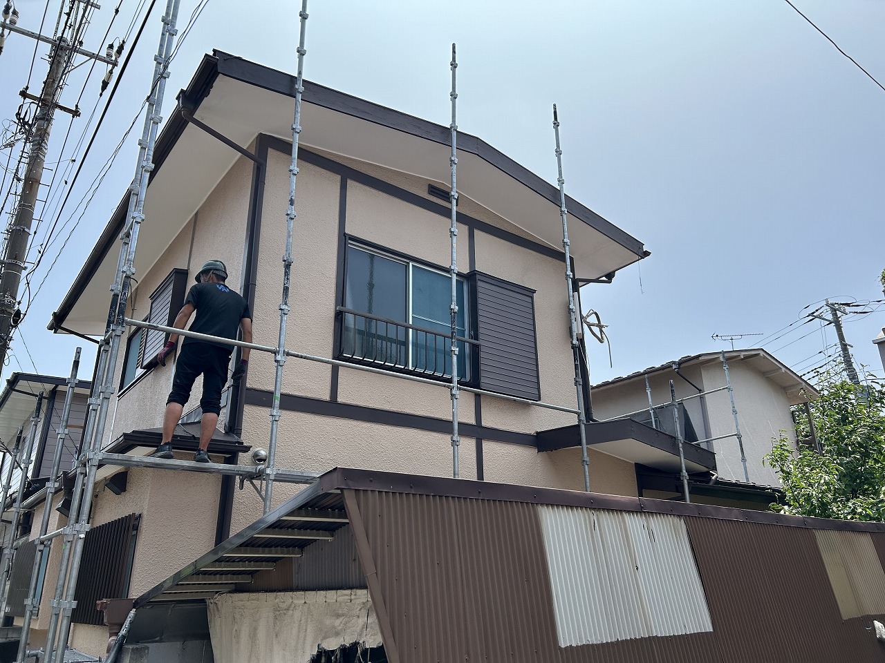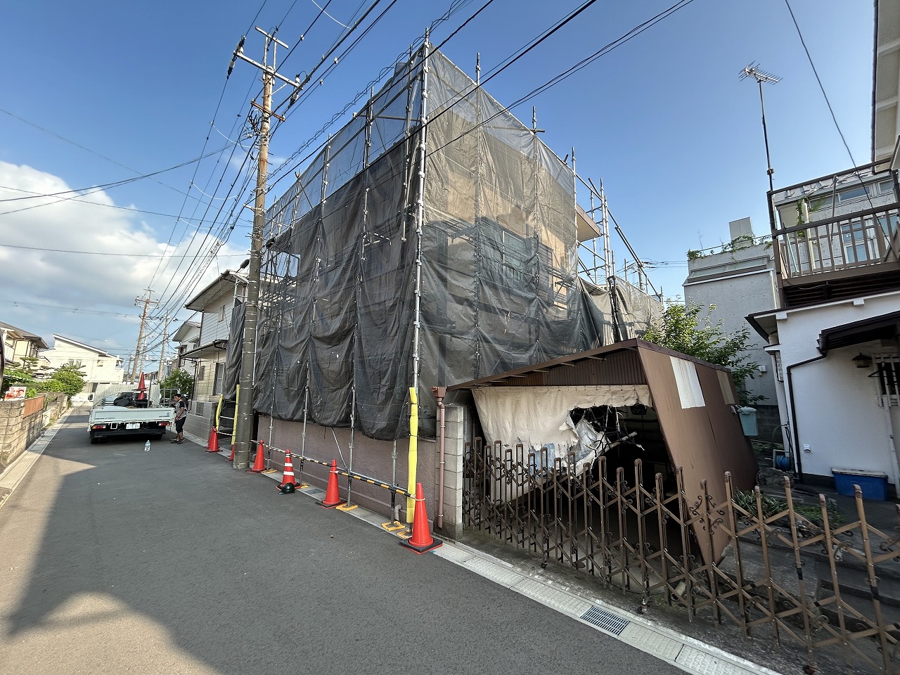 物凄く暑い日です。足場屋さんは若者ばかりで元気です。