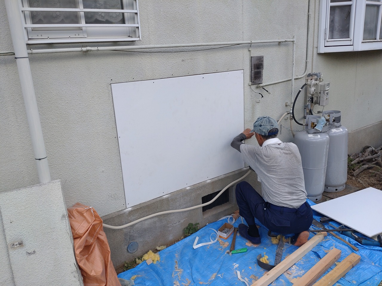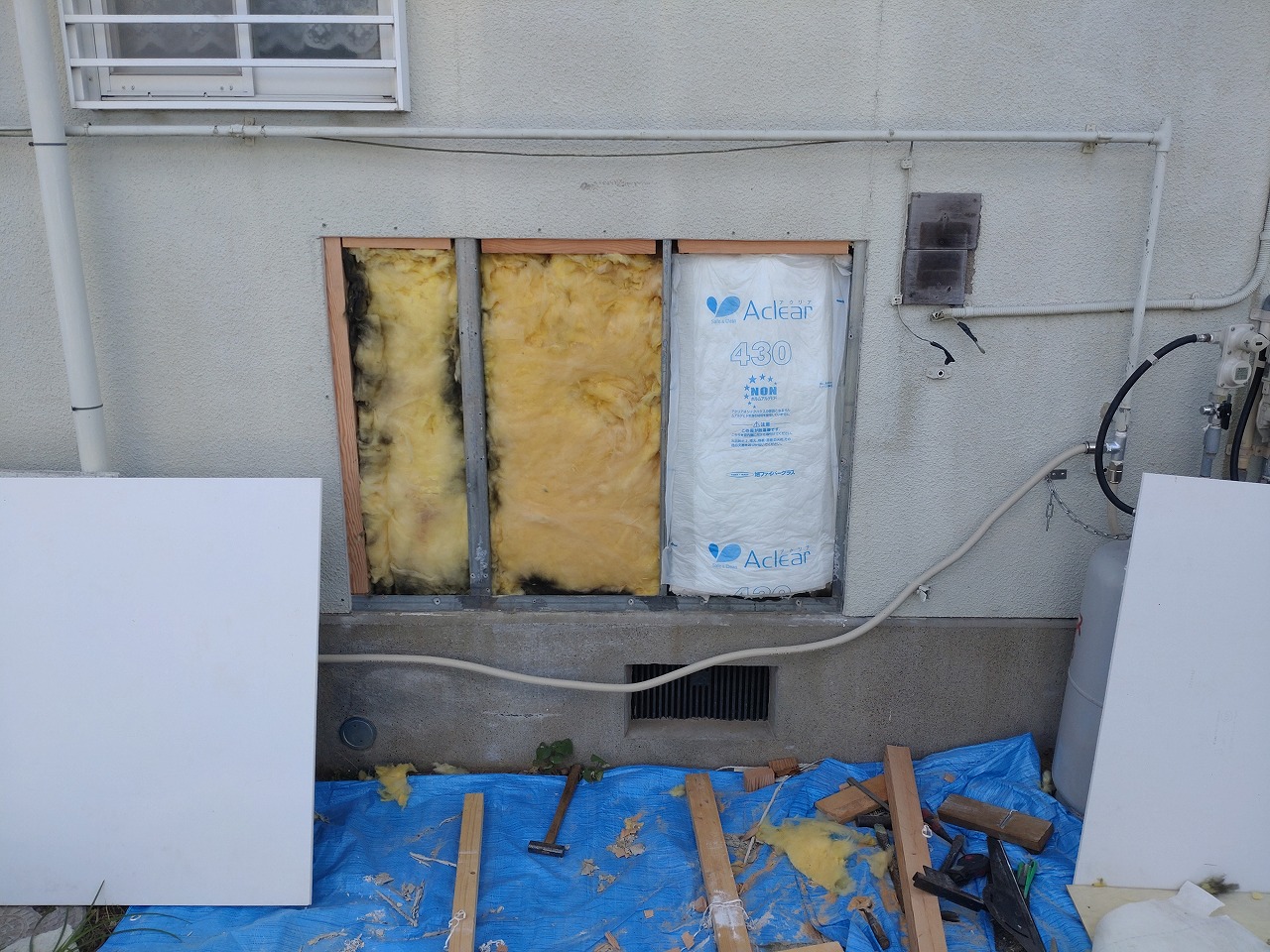 断熱材を戻します。一部足りませんでしたので、新しい