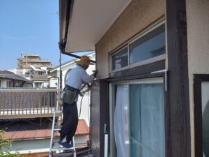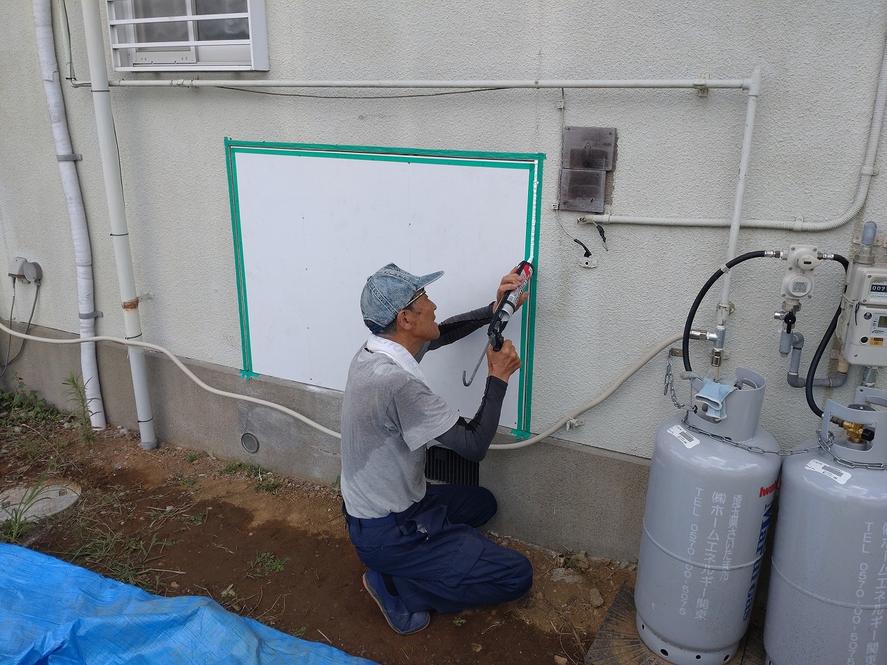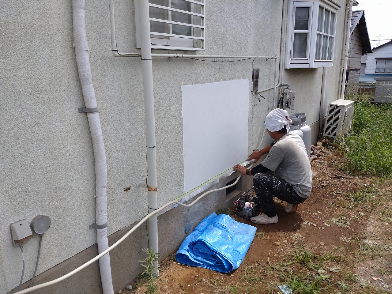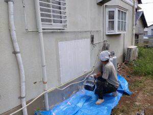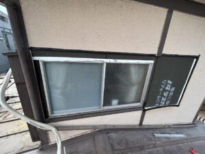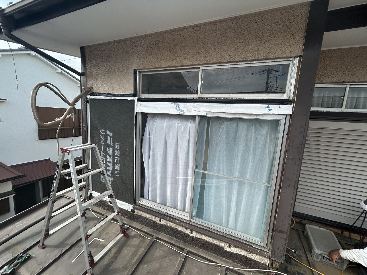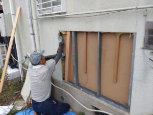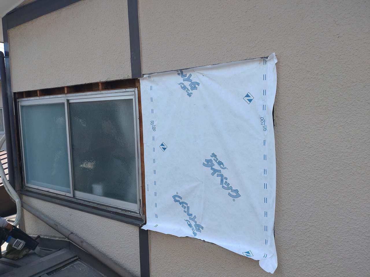 戸袋を外したあとには透湿シートを張ります。