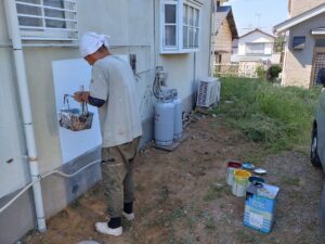 猛暑中、壁の色を調合しております。