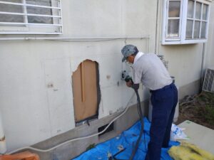 中の断熱材を一旦取り除きます。