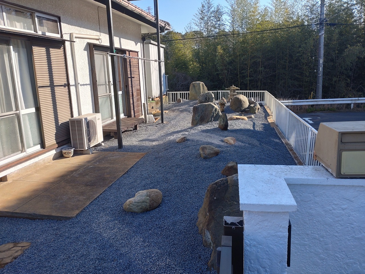 現場でいろいろな案を出してくれて、どんどん庭が生き返り、石庭のように様変わり!