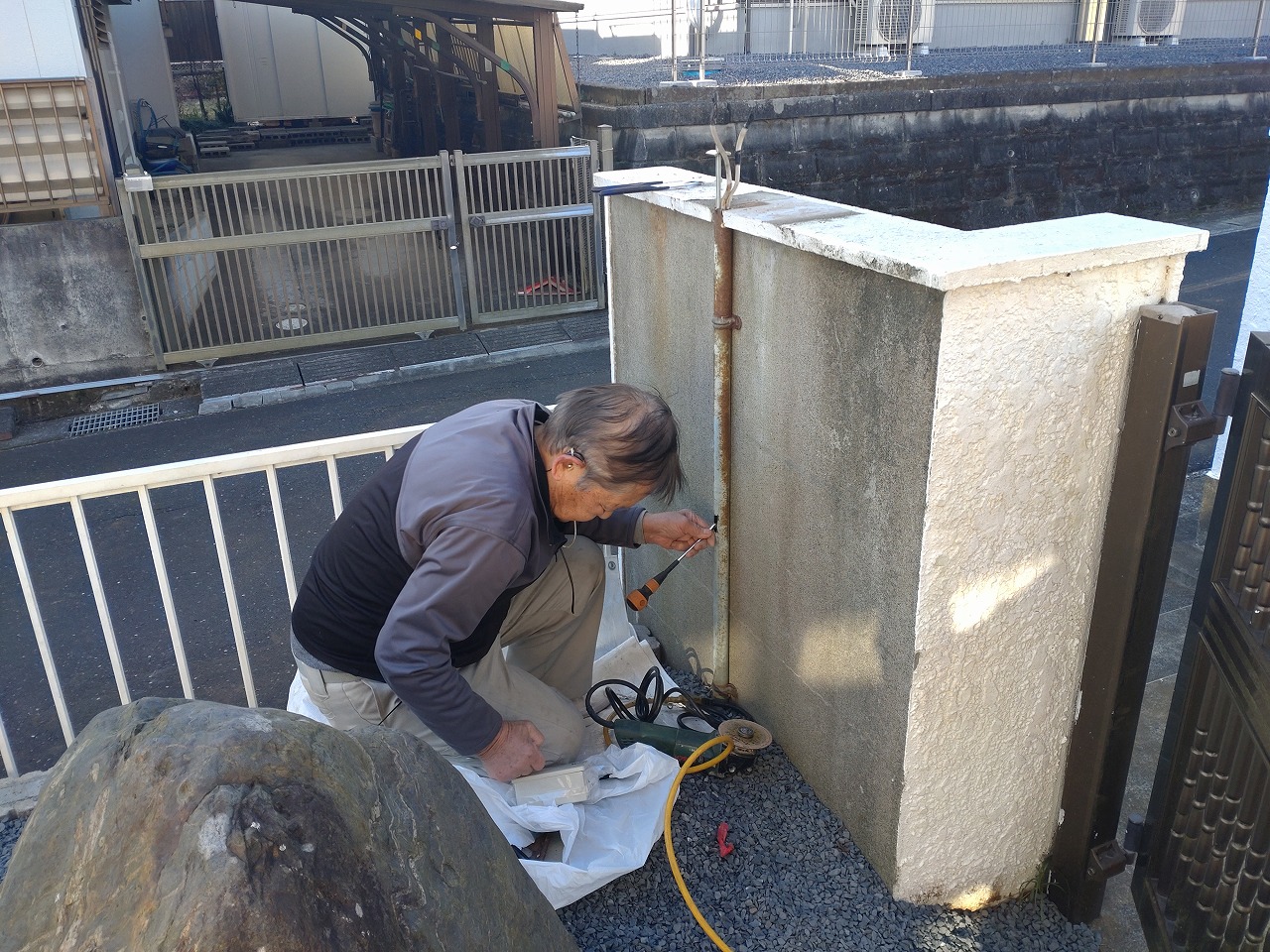 古いポストを撤去して鉄管を切断し、BOXを付けて
