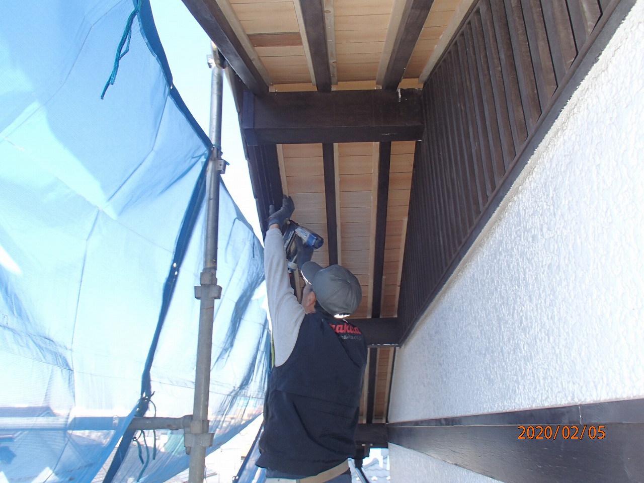 本来この軒天の工事は瓦をめくって上から軒天材を張り替えるのですが、