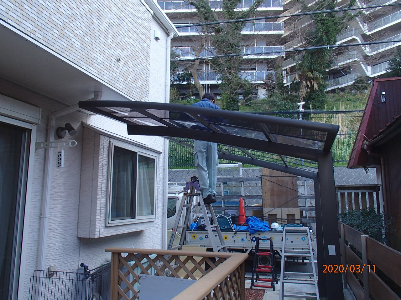 今日はカーポートの屋根材の張替えです。台風15号の被害ですから結構待ちましたね!