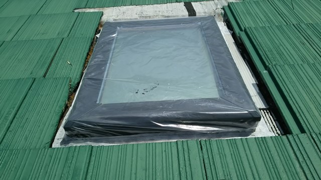 トップライト(天窓)から雨漏りしてますので撤去します。