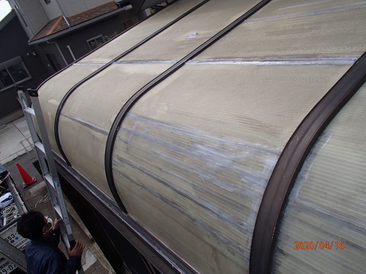今日はテラスの雨漏りが止まらないお客様の改修工事です。