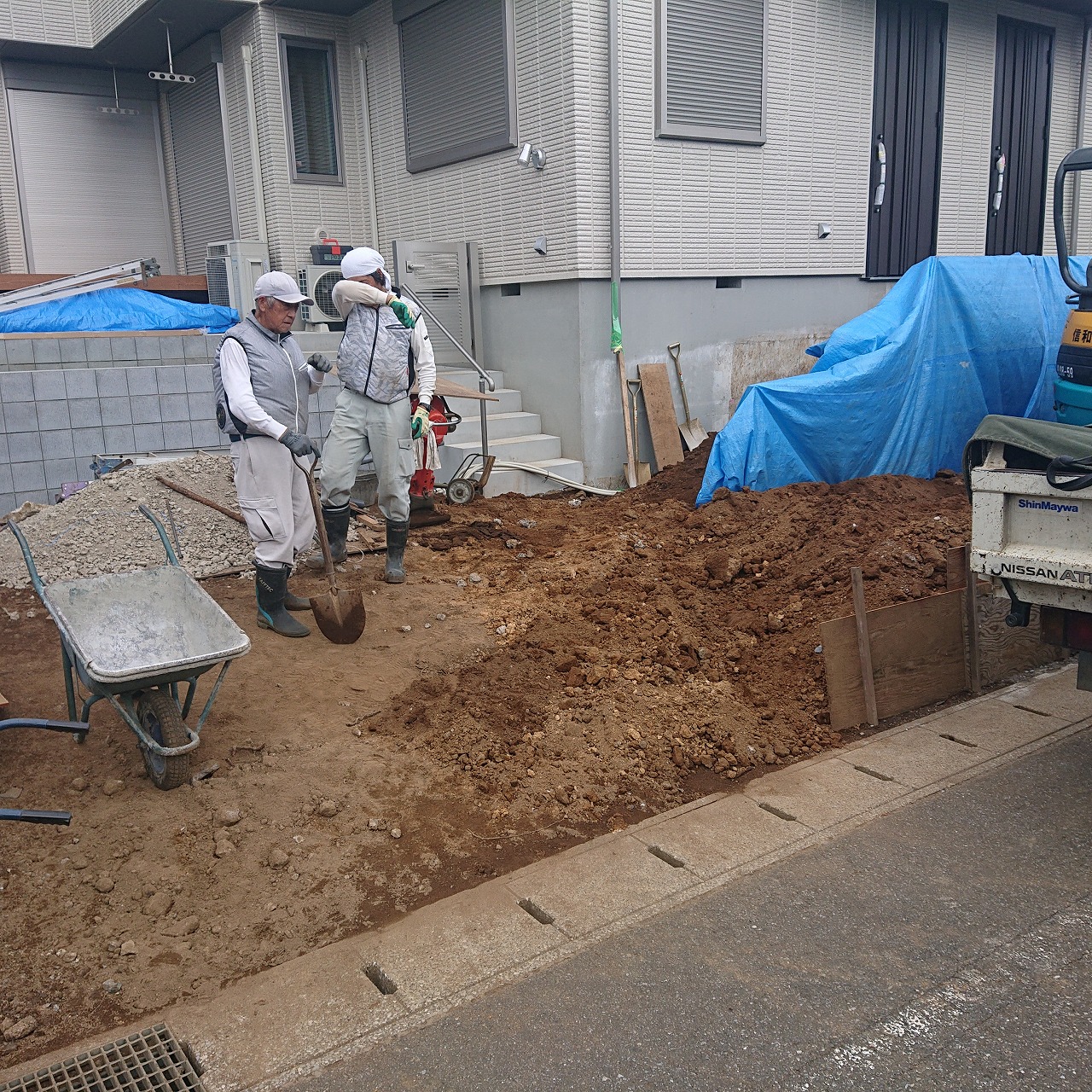 結構ボリュームのある外構現場です。いつもの鳶さん頑張ってます。