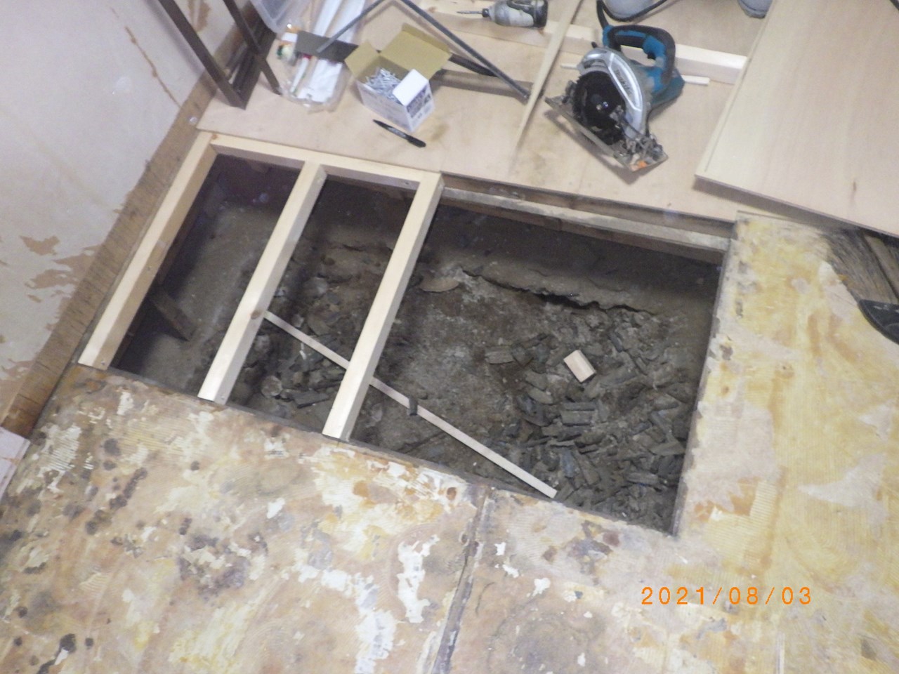 キッチンの現場ですね。大工さんの工事も終わり、今度の土曜日に