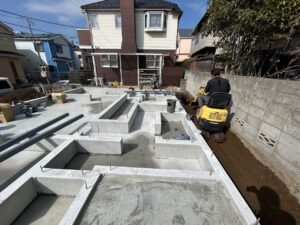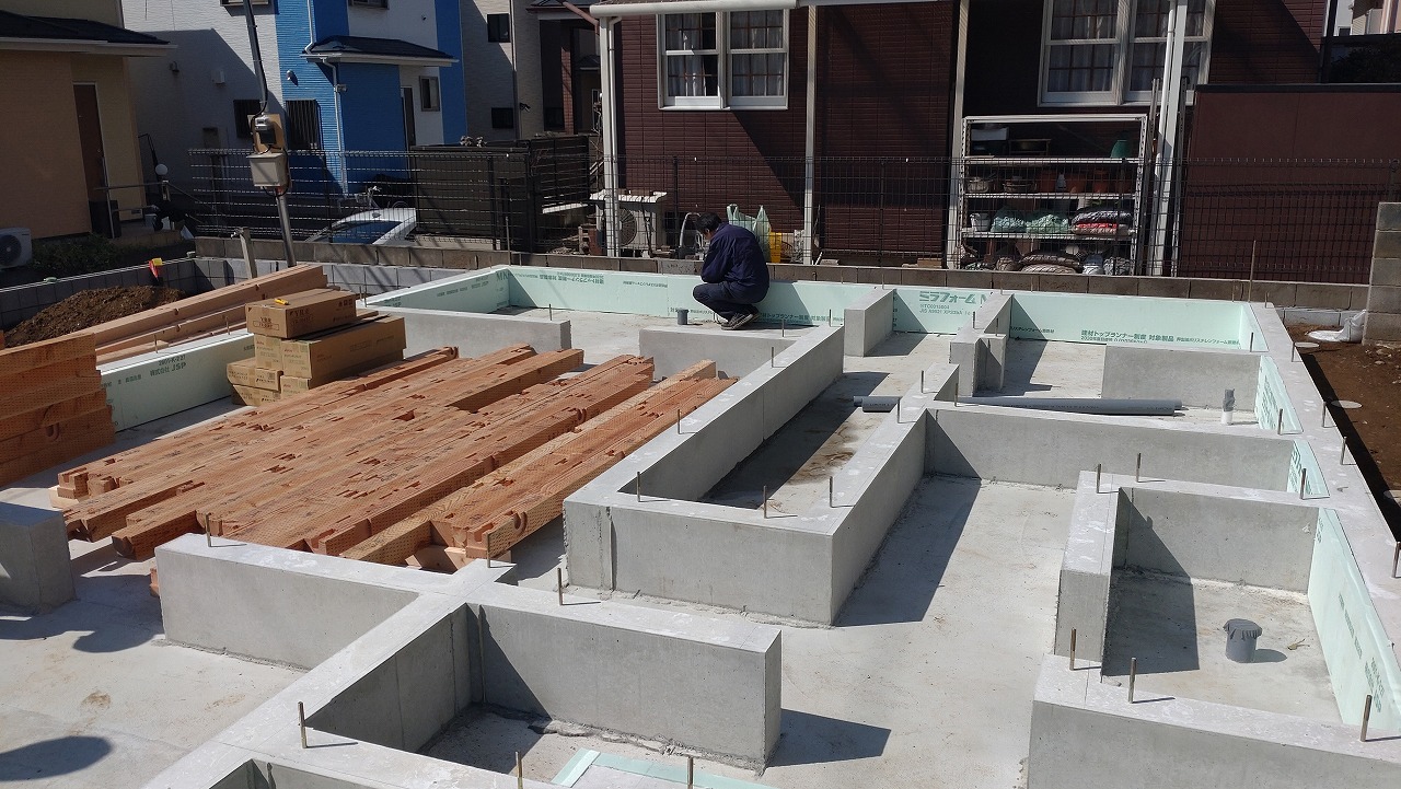 土台敷きですね!土台を敷いて床断熱~床ベニヤと作業が進み、
