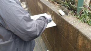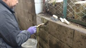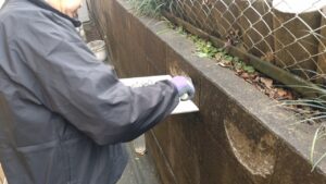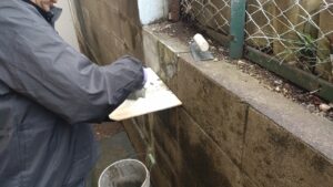 そうです、ブロック塀の表面が劣化して薄く剥がれ落ちている箇所が