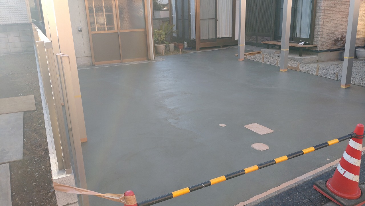 今日は駐車場の工事で、生コン車が来て土間打ちをした現場があるので